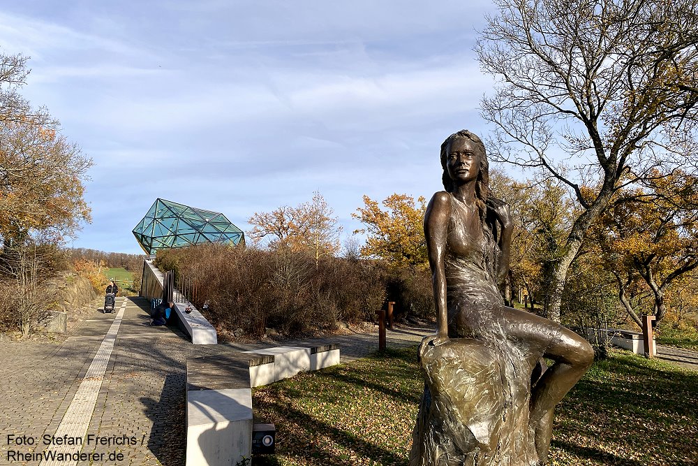 In der Nähe der Felsenspitze befindet sich auch eine bronzene Skulptur der Loreley. Nach der Besichtigung kehrt man zum Vorplatz beim Loreley-Besucherzentrum zurück.