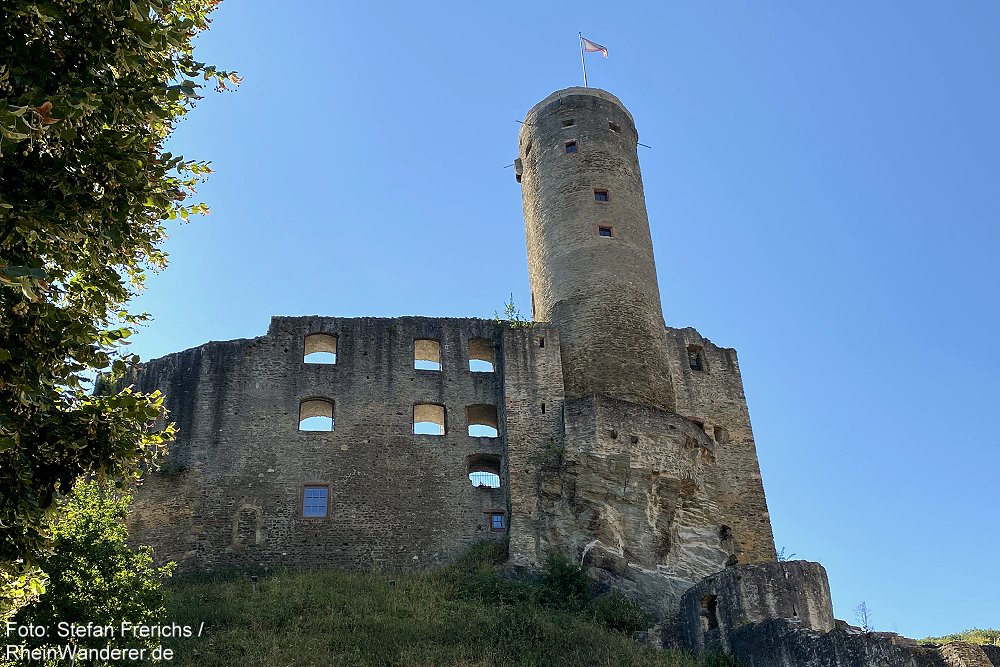Am Marktplatz verlässt man den Taunus-Schinderhannes-Steig und folgt weiter der Burgstraße vorbei an der neugotischen Sankt-Laurentius-Kirche von 1903.